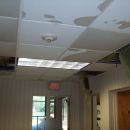 Soil-Away’s flood damage cleanup crews arrived at the Exeter office building within two hours. Despite it being a weekend, the team was ready to work through the night to help the business recover from property disaster. The office space was a total of 4,000 square feet. At least three-quarters of it was affected. The source of the water damage was the second floor men’s room. Water seeped across the floors on the second level and eventually started leaking through to the floor below. The carpets and lower walls were soaked on the second floor. The first floor was the real issue. It looked as if a thunder storm had ripped through the place. The flood damage cleanup needs were extensive. Ceilings were collapsing, light fixtures were filled with water, walls were dripping with moisture and the carpets were saturated. The two initial crews that arrived from Soil-Away called in reinforcements.