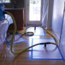 A water damage mitigation crew was dispatched to the Portsmouth house later that afternoon to try and save the wood floors. Soil-Away setup their specialized floor-drying system. This consisted of mats to cover the affected areas. The mats were connected to an air mover which concentrated air flow on the wood. In the basement, the flood cleanup crew removed the wet insulation from the ceiling. They setup a drying system that would remove excess moisture from the wood structure. The warmth generated from Soil-Away’s dehumidifiers in the basement would rise through the kitchen floor to help dry it as well. After three days of the drying equipment running, all the affected areas met dry standard. The cupping of the wood floors had settled back down. There was no need to remove and replace the floor. The Portsmouth couple was very pleased.